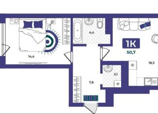 Продаю 1-ком. квартиру, 50.7 м2