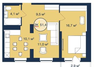 Продажа двухкомнатной квартиры, 51.4 м2, Таёжная улица, 2