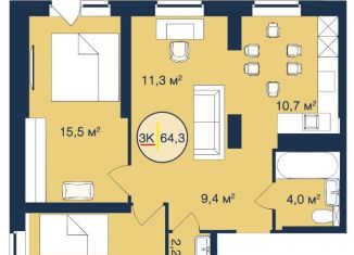 Общая площадь: 64.3 м2