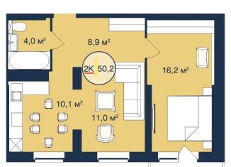Общая площадь: 50.2 м2