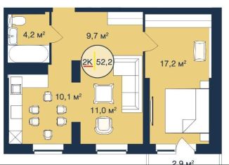 2-ком. квартира на продажу, 52.2 м2, Таёжная улица, 2