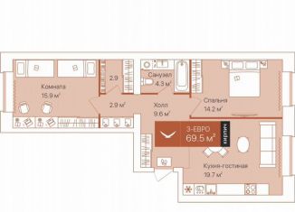 Продается 3-комнатная квартира, 68.9 м2