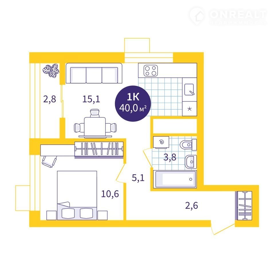 Общая площадь 40 м2