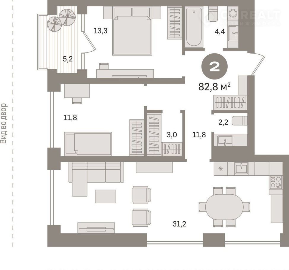 Общая площадь: 82.8 кв.м.,