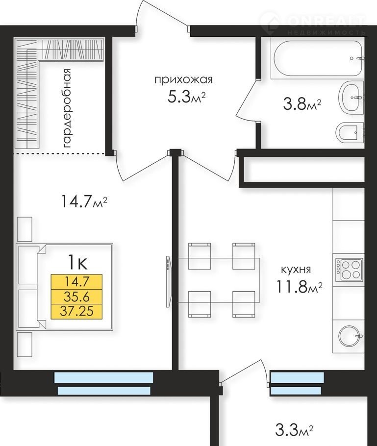 Общая площадь 36 м2
