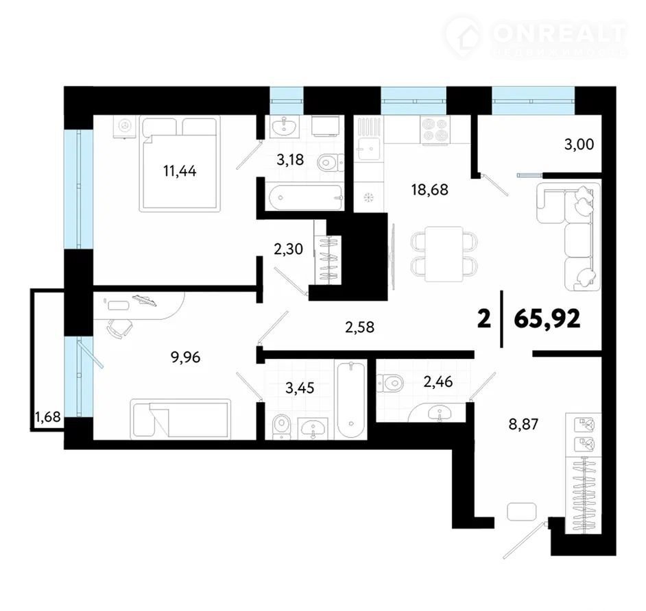 Общая площадь 65.9 м2