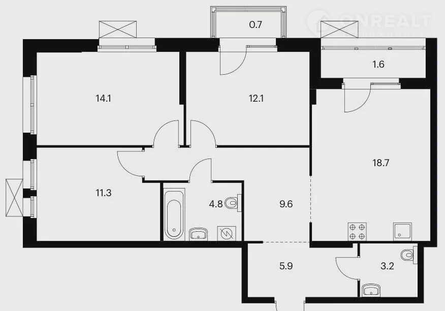 Количество комнат 3