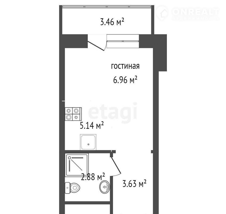 Общая площадь 22.1 м2