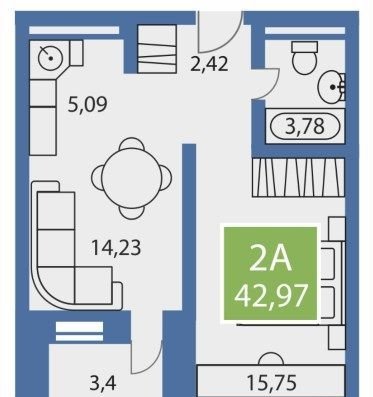 Общая площадь 43 м2