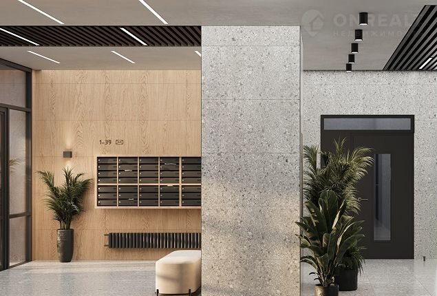 В квартире предчистовая отделка: стены оштукатурены и выровнены по общему уровню, на полу слой цементно-песчаного раствора с дополнительным гидроизоляционным слоем в ванной. Проведена электрика и готовы розетки с выключателями. А ещё установлены сейф-двери и счётчики с телеметрией.
