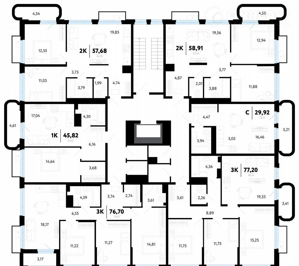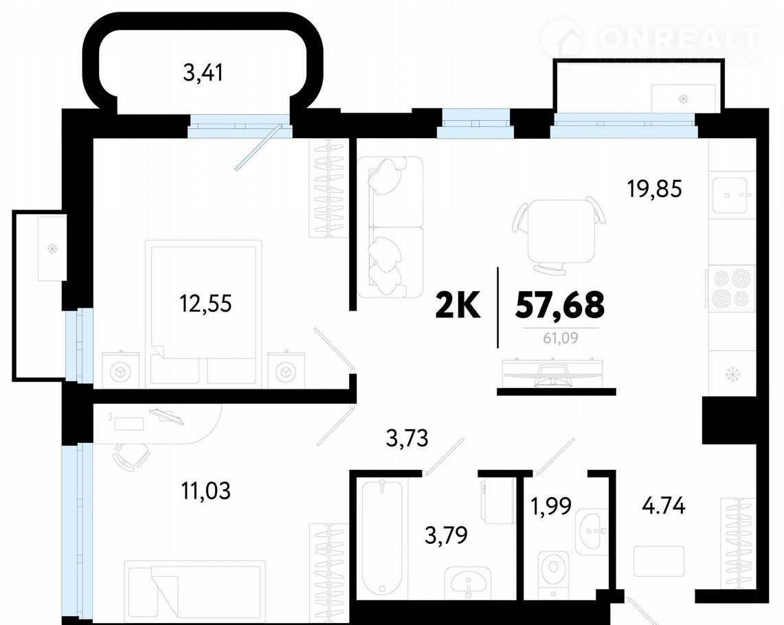 Общая площадь 57.7 м2