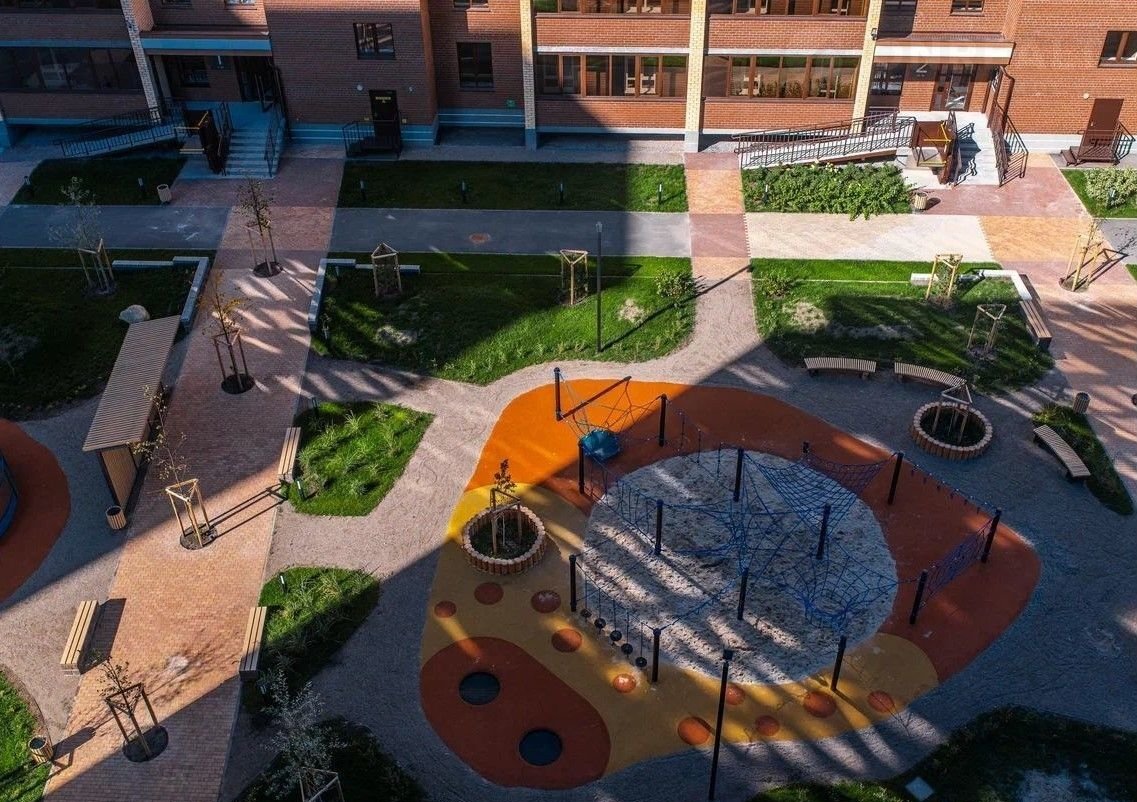 - Благоустроенная территория с пешеходным бульваром, игровыми и спортивными площадками, лаунж-зонами для взрослых.