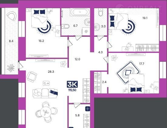 Общая площадь 115.5 м2