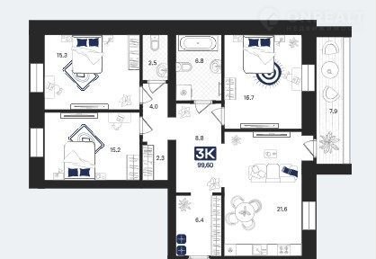 Общая площадь 99.6 м2
