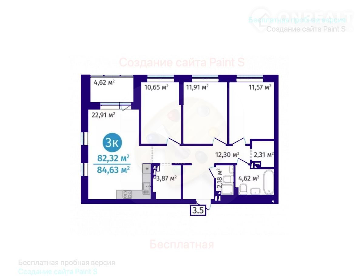 Общая площадь 84.6 м2