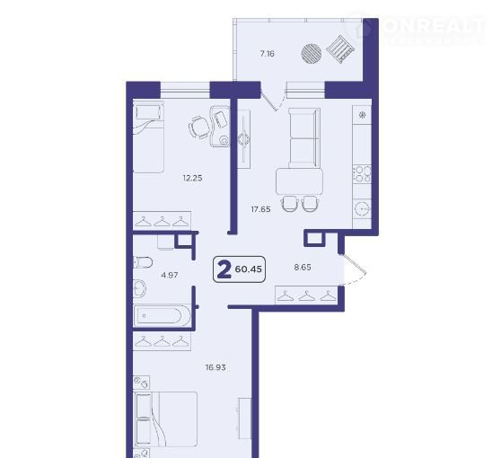 Общая площадь 60.5 м2