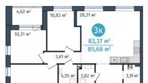 Общая площадь 83.4 м2