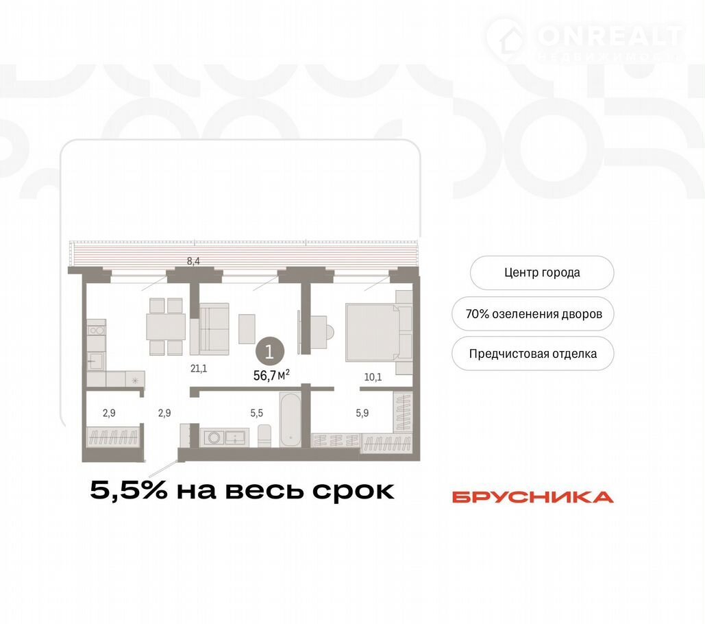 Общая площадь 56.7 м2