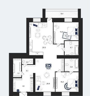 Общая площадь 119.6 м2