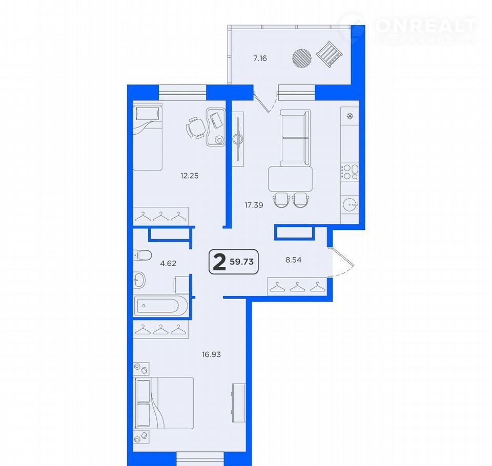 Общая площадь 59.7 м2