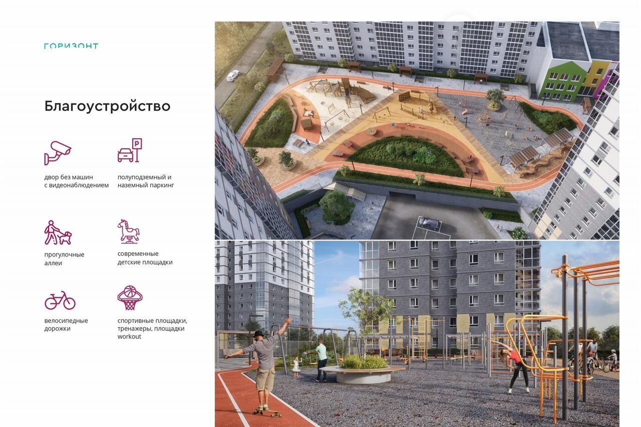 - Просторная парковка для жителей обеспечивает комфортное размещение вашего автомобиля.