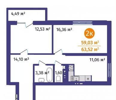 Общая площадь 64 м2