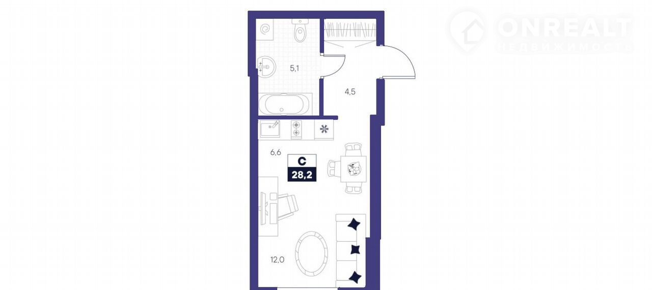Общая площадь 28.2 м2