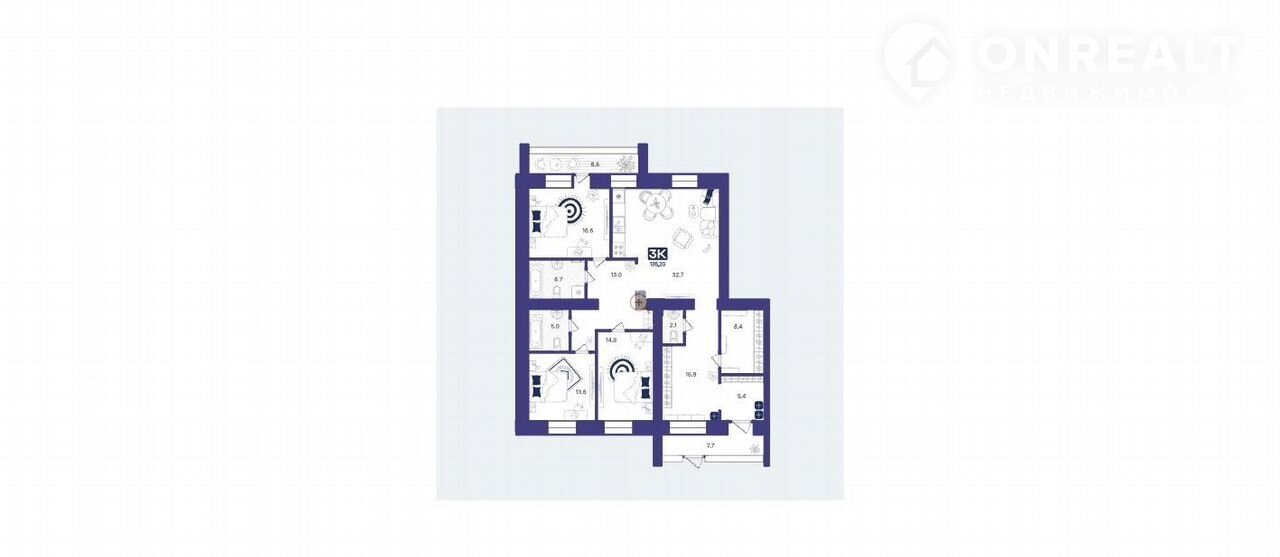 3-комнатная квартира, 135.2 м2, этаж 1 / 9, на продажу в Тюмени, улица Тимофея Кармацкого, 7к2