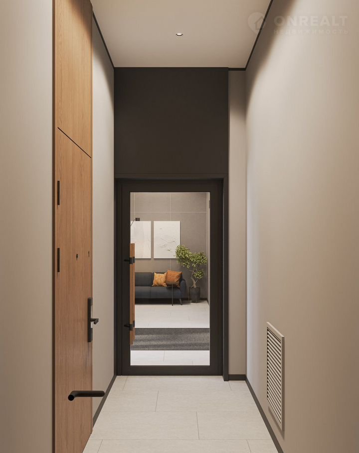Подъезды «Дома у озера» с прозрачными входными группами и большими лифтами. Для мест общего пользования архитекторы разработали новую интерьерную коллекцию, вдохновленную эклектичными восточными мотивами. В отделке сочетаются коричневый, желтый и белый цвета, повторяющие колористические решения фасадов.