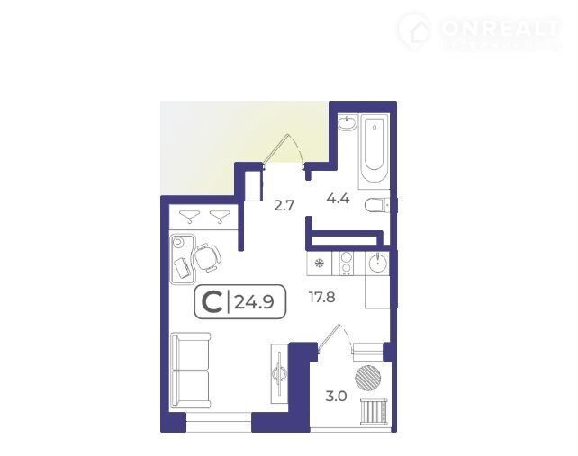 Общая площадь 25 м2