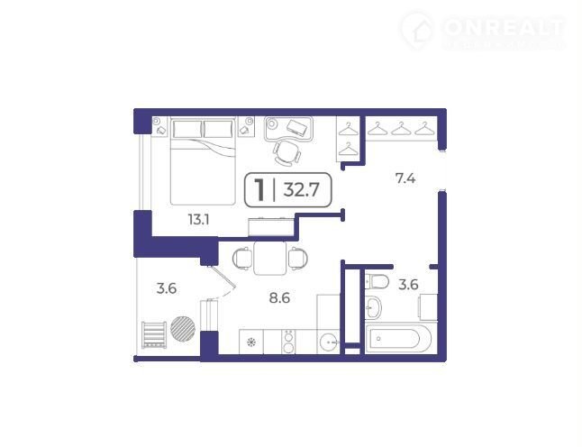 Общая площадь 36 м2