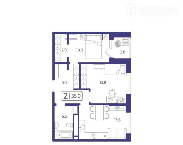 Общая площадь 57 м2