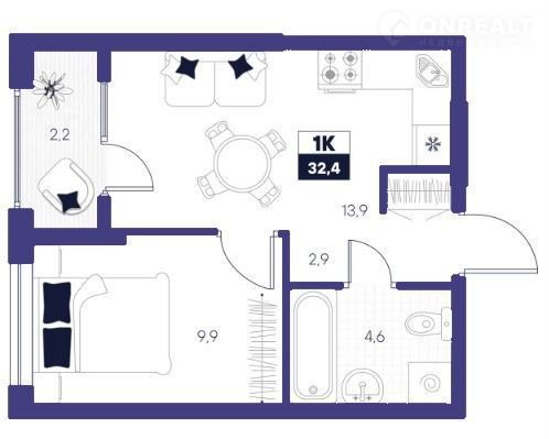 Общая площадь 32.4 м2