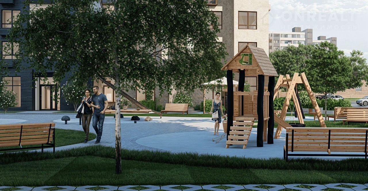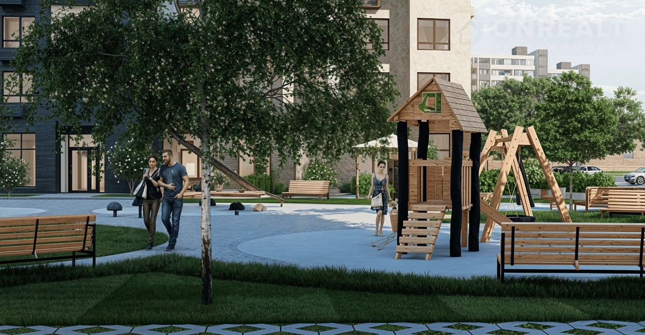 • Проект отличается уникальным дизайном, который формирует комфортную и эстетически привлекательную среду для проживания. Внутренние дворы оборудованы пешеходными дорожками и зонами для отдыха, где можно расслабиться на шезлонге после рабочего дня.