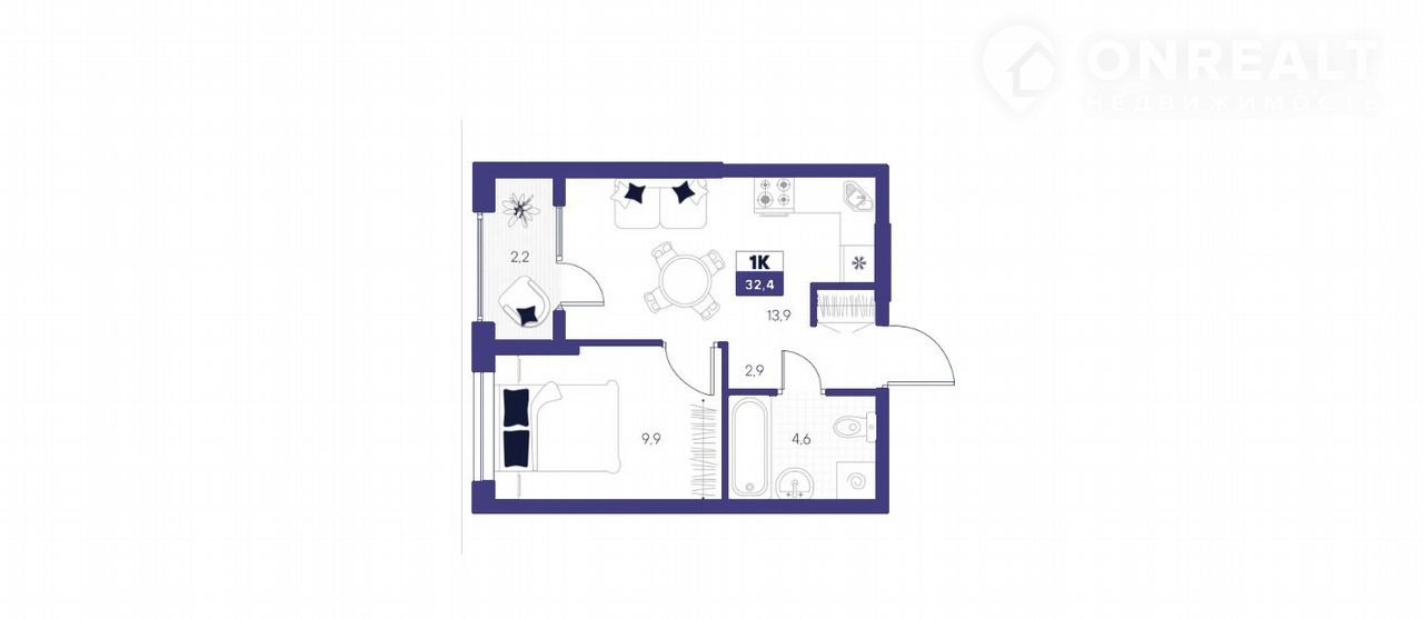 Общая площадь 32.4 м2