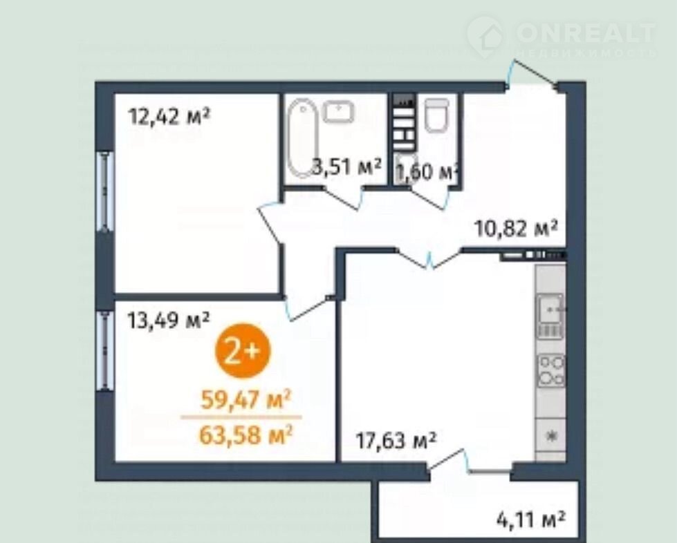 Общая площадь 59.5 м2