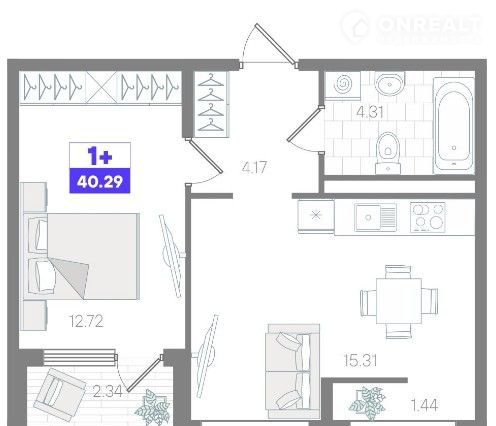 Общая площадь 40.3 м2