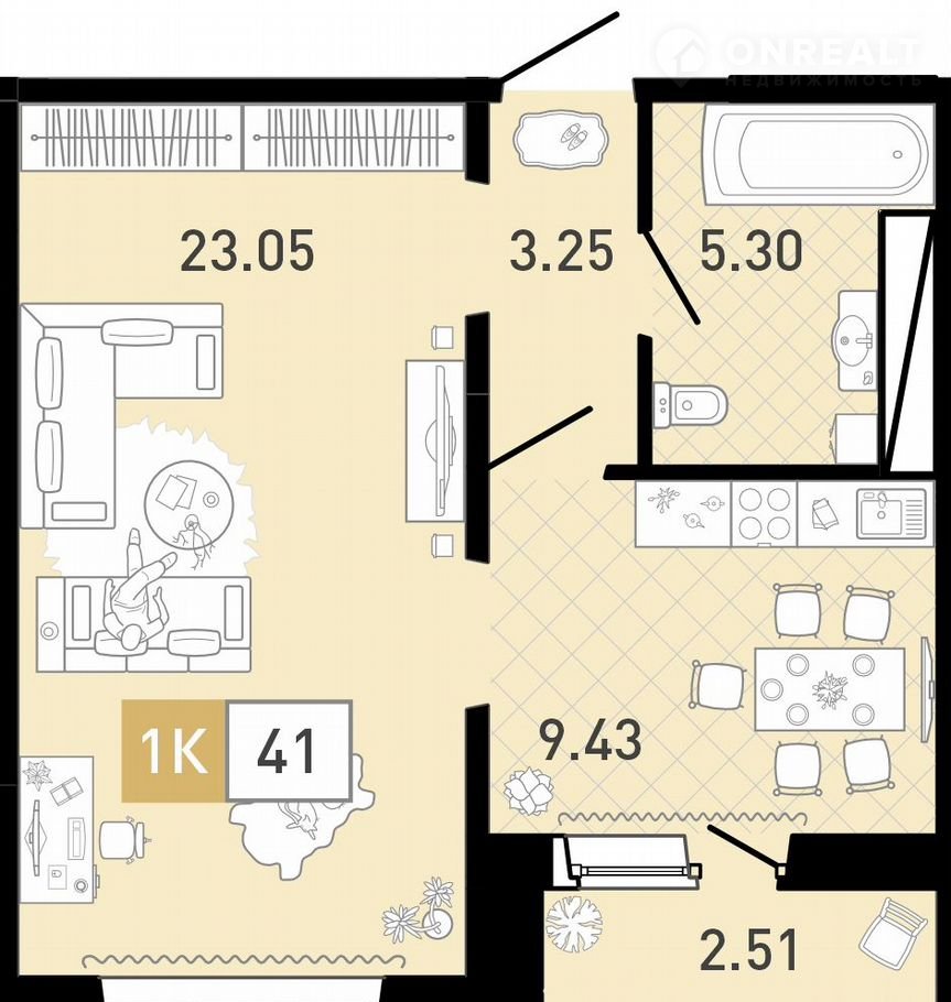 Общая площадь 41 м2