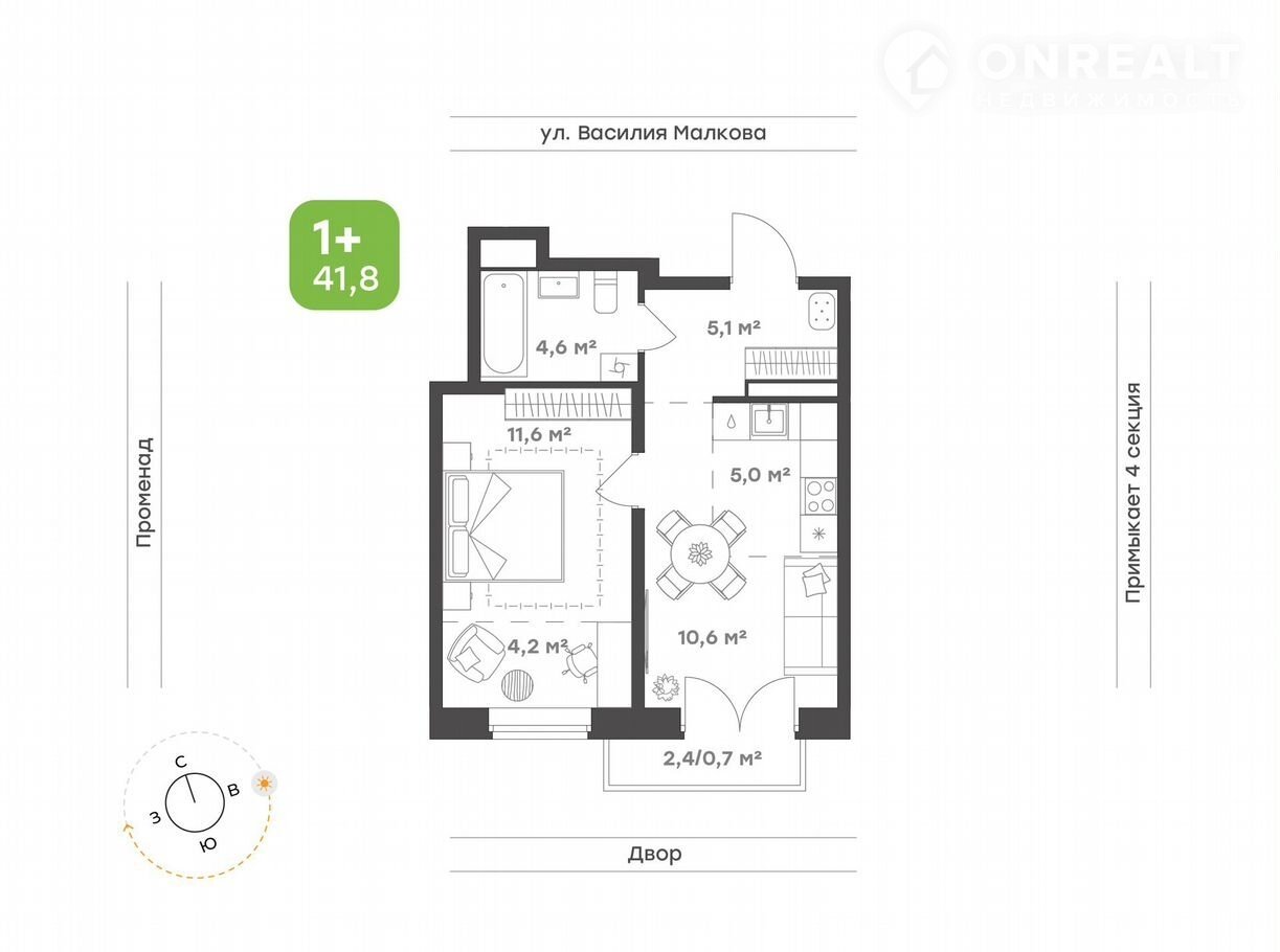 Общая площадь 41.8 м2