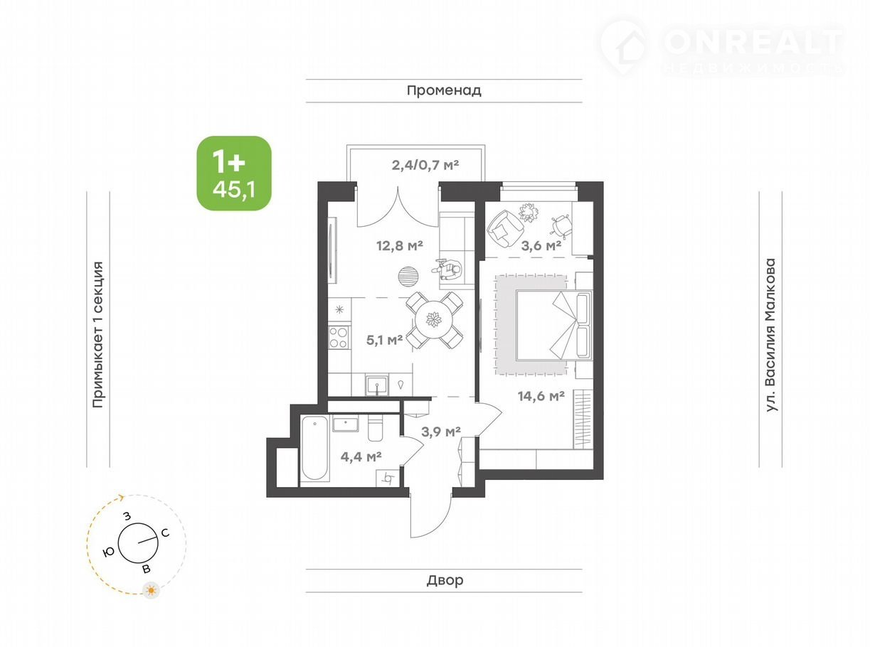 Общая площадь 45.1 м2