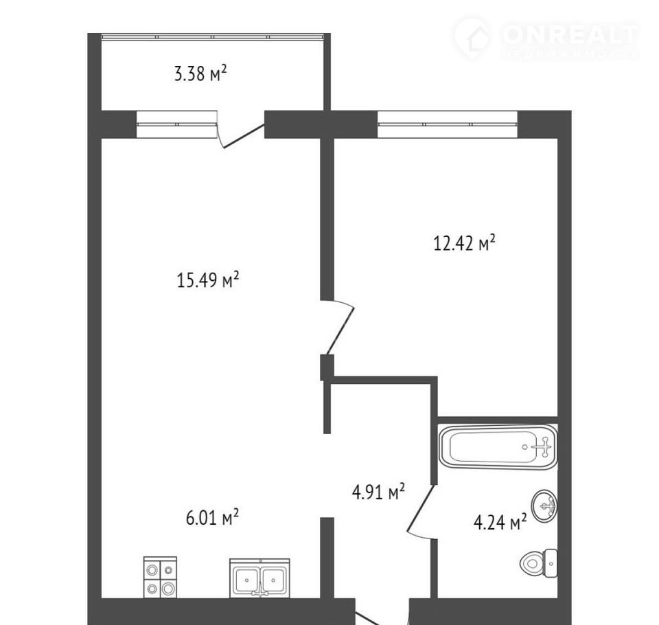 Балкон, лоджия 1 балкон