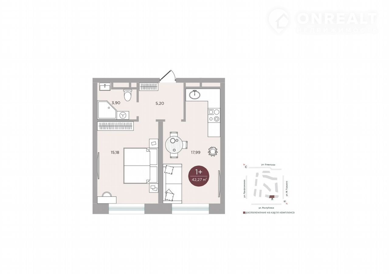 Общая площадь 42.3 м2