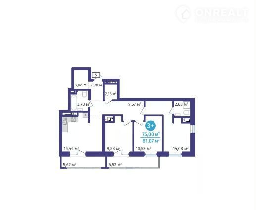 Общая площадь 75 м2