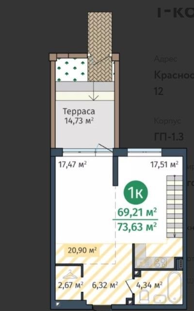 Общая площадь 69 м2