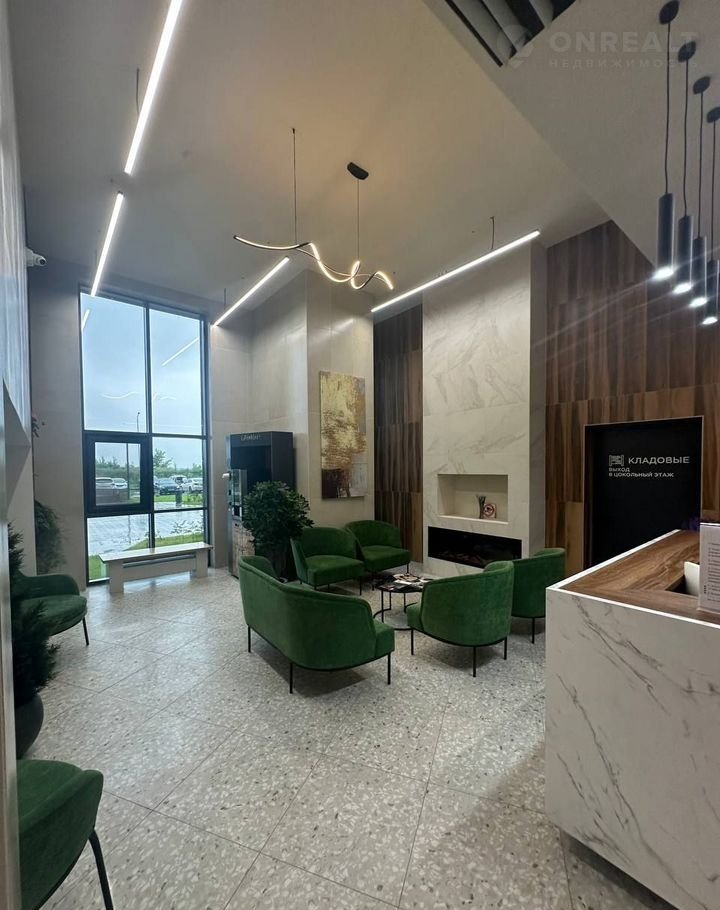 - Дизайнерский подъезд с мягкой зоной и консьержем, кофейный аппарат, диваны, столик.