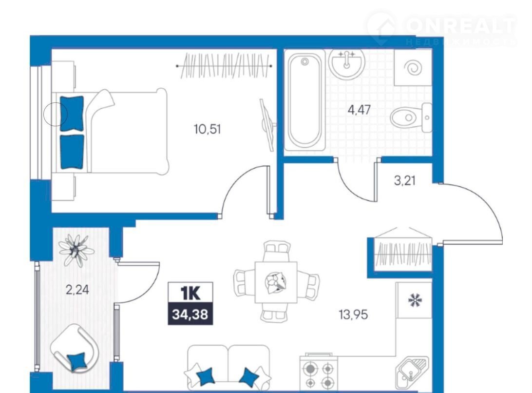 Общая площадь 34.4 м2