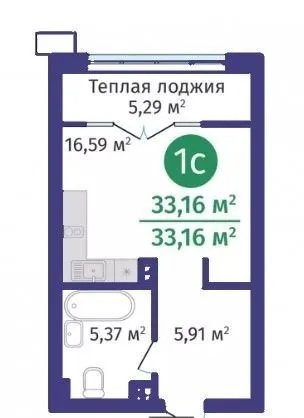 Общая площадь 33.2 м2