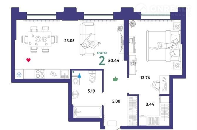 Общая площадь 50.7 м2