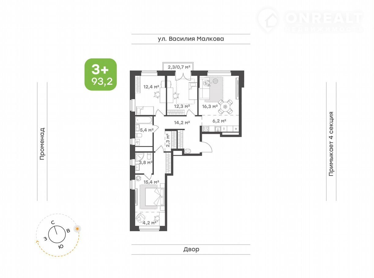 Общая площадь 93.2 м2