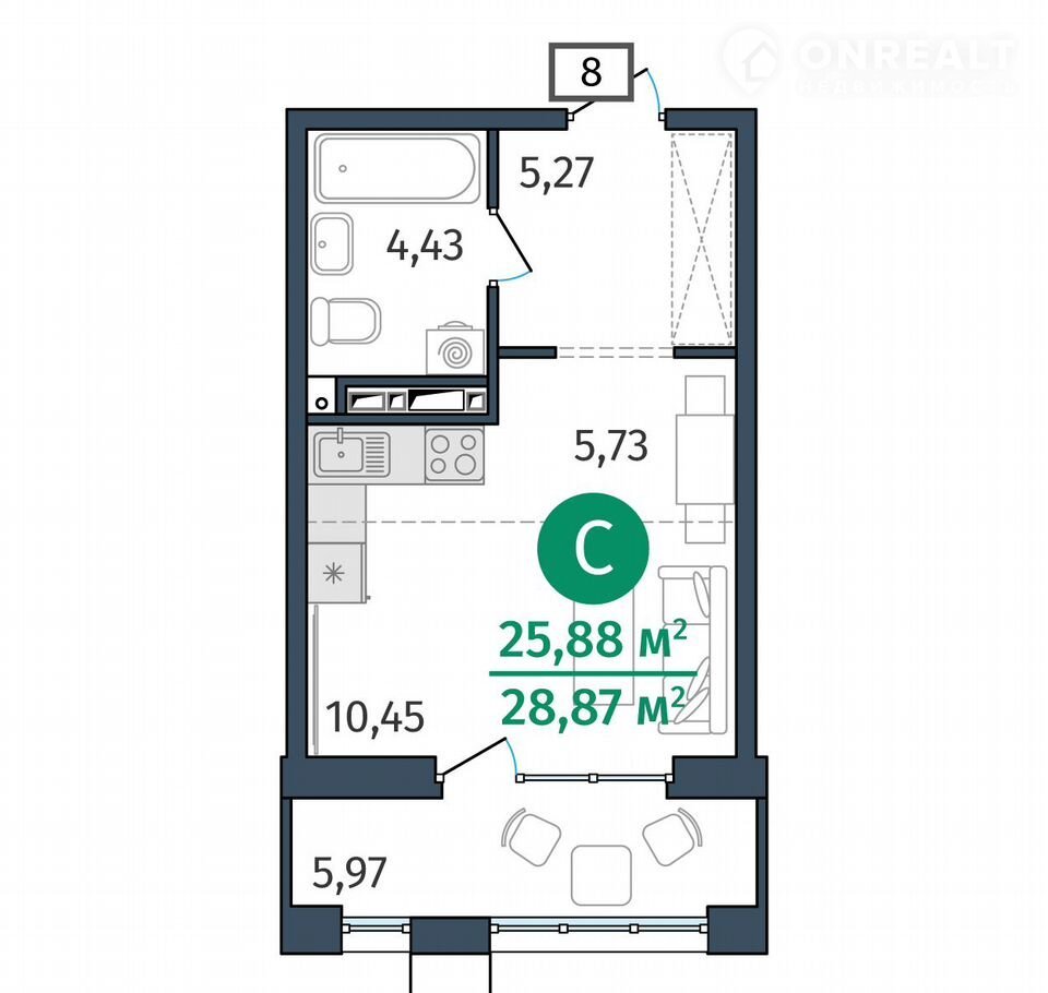 Общая площадь 25.9 м2